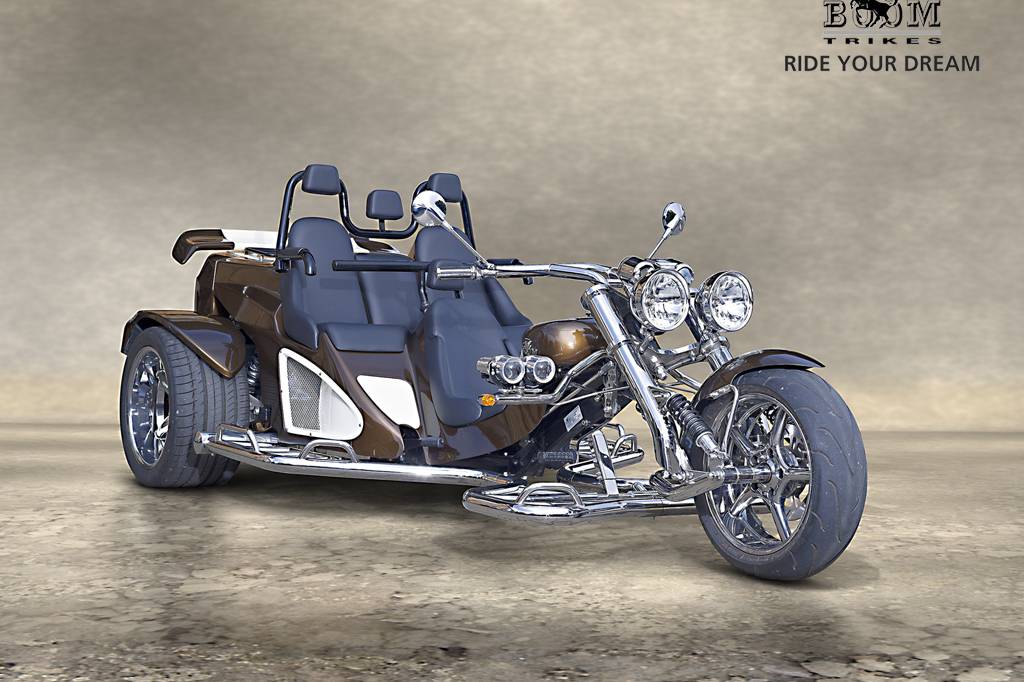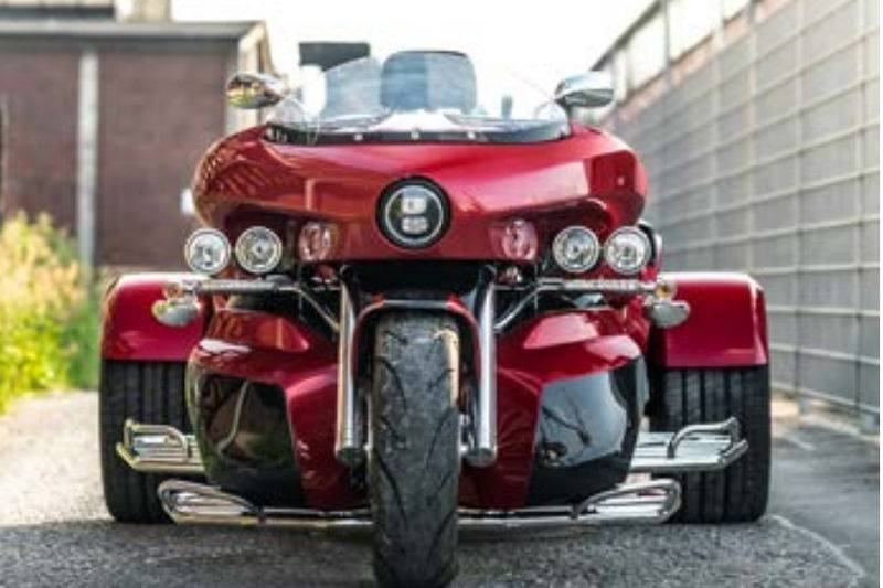 Vous retrouverez le design qui caractérise chaque trikes avec l’ajout du bouclier de type cruiser.